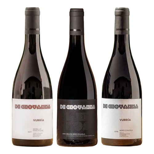 All'interno troverai l'Helios Nero D'Avola, il nostro rosso di punta, noto per la sua eleganza e longevità, il Vurria Nero D'Avola, espressione pura e vibrante del vitigno principe dell'isola, e il Vurria Nerello Mascalese, che affascina con le sue note speziate e la sua raffinata struttura tannica.